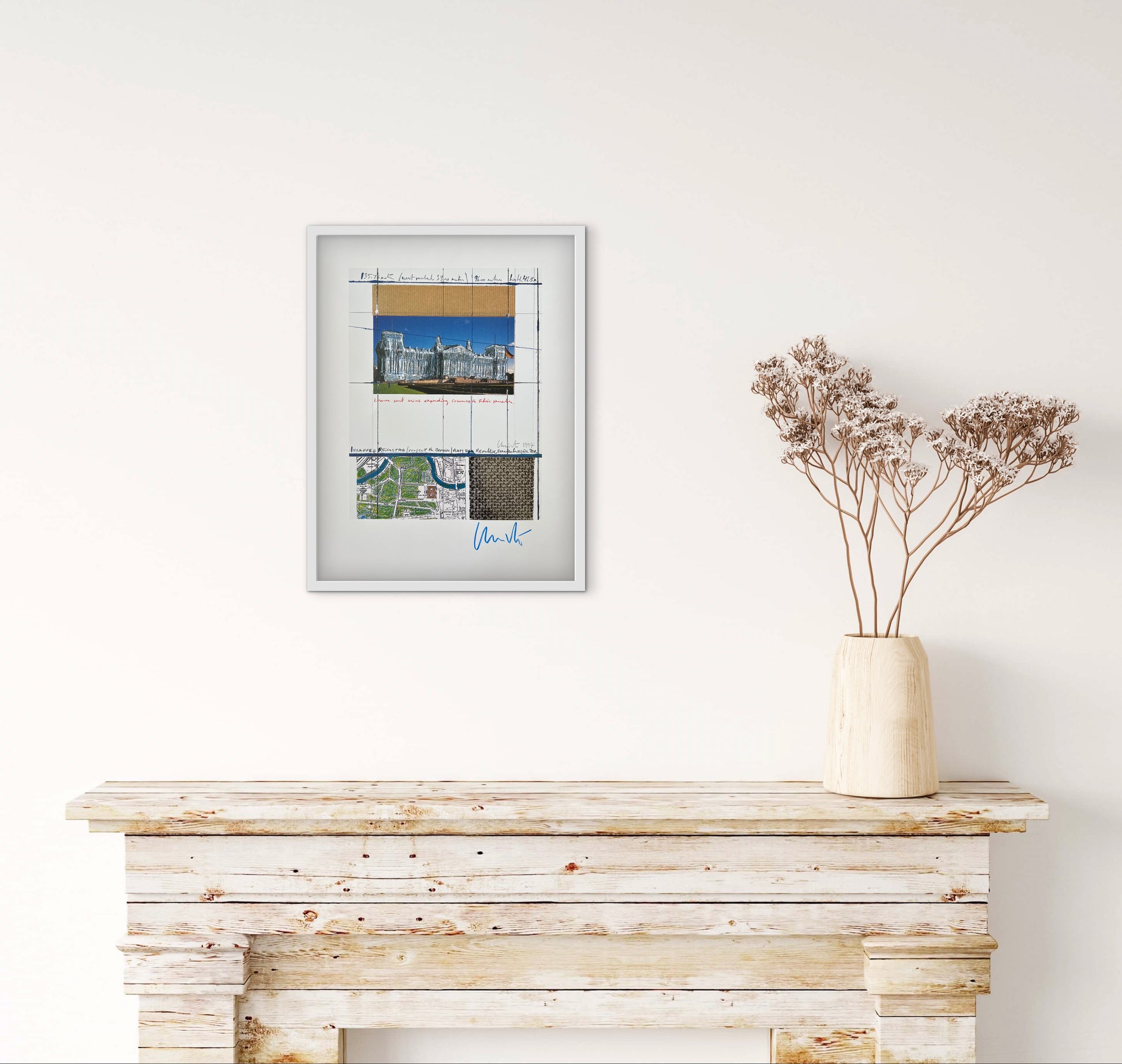 Christo (1935-2020) - „Wrapped Reichstag, Project for Berlin" - Collage mit Silberfolie (handsigniert)