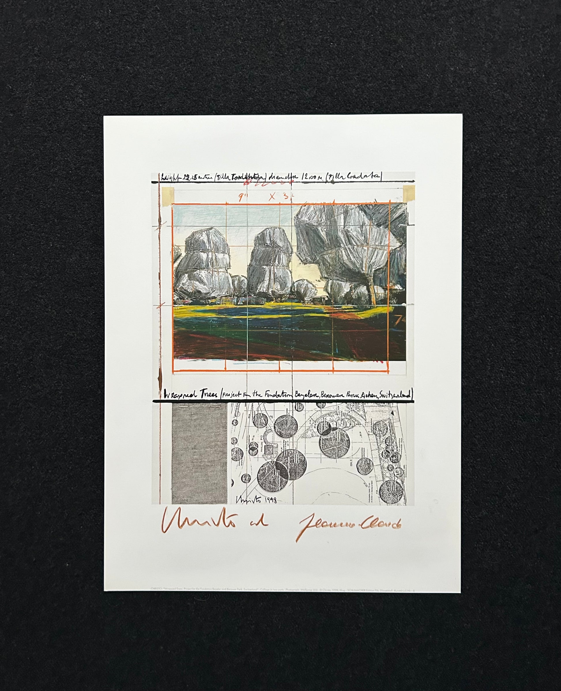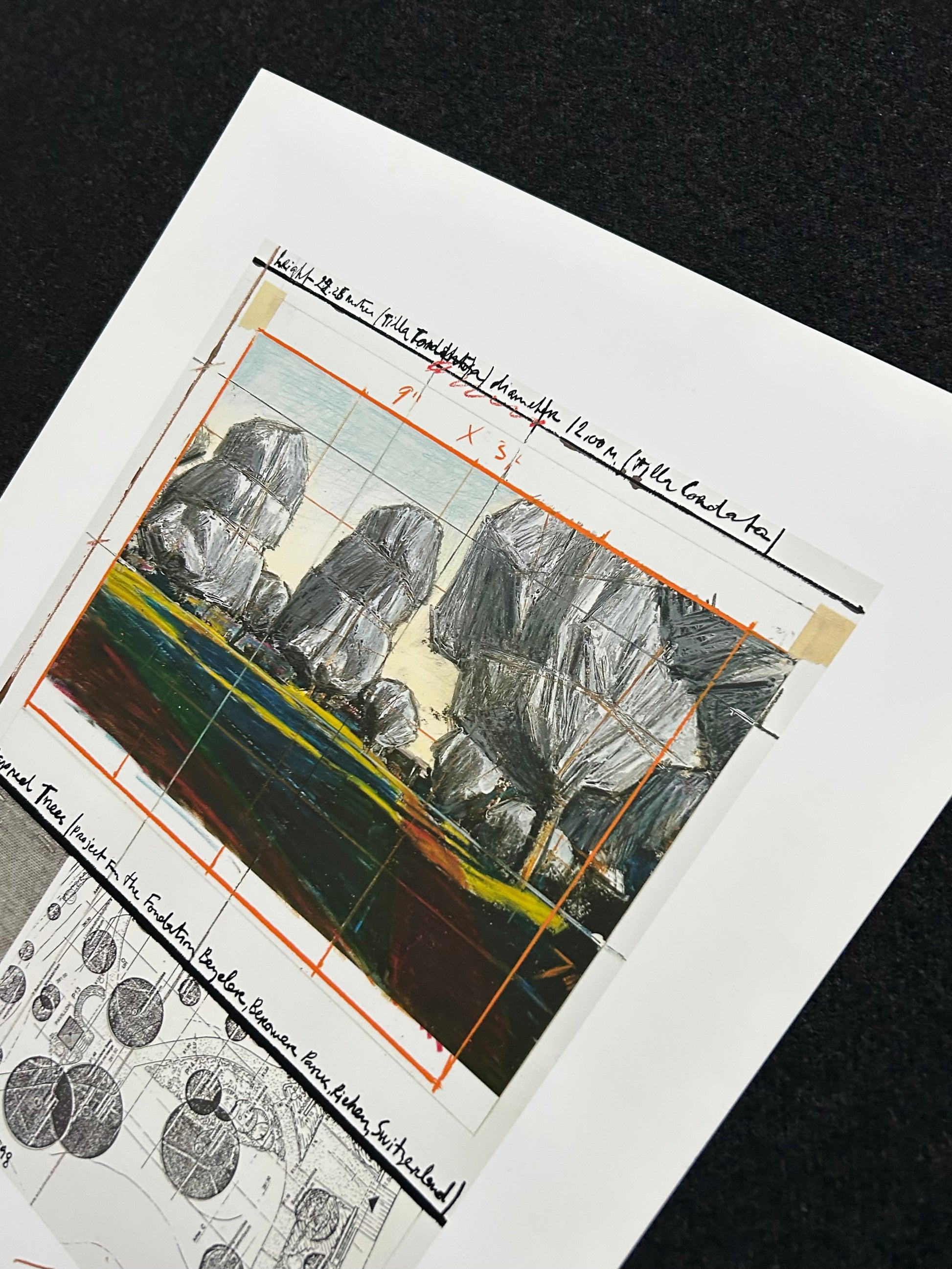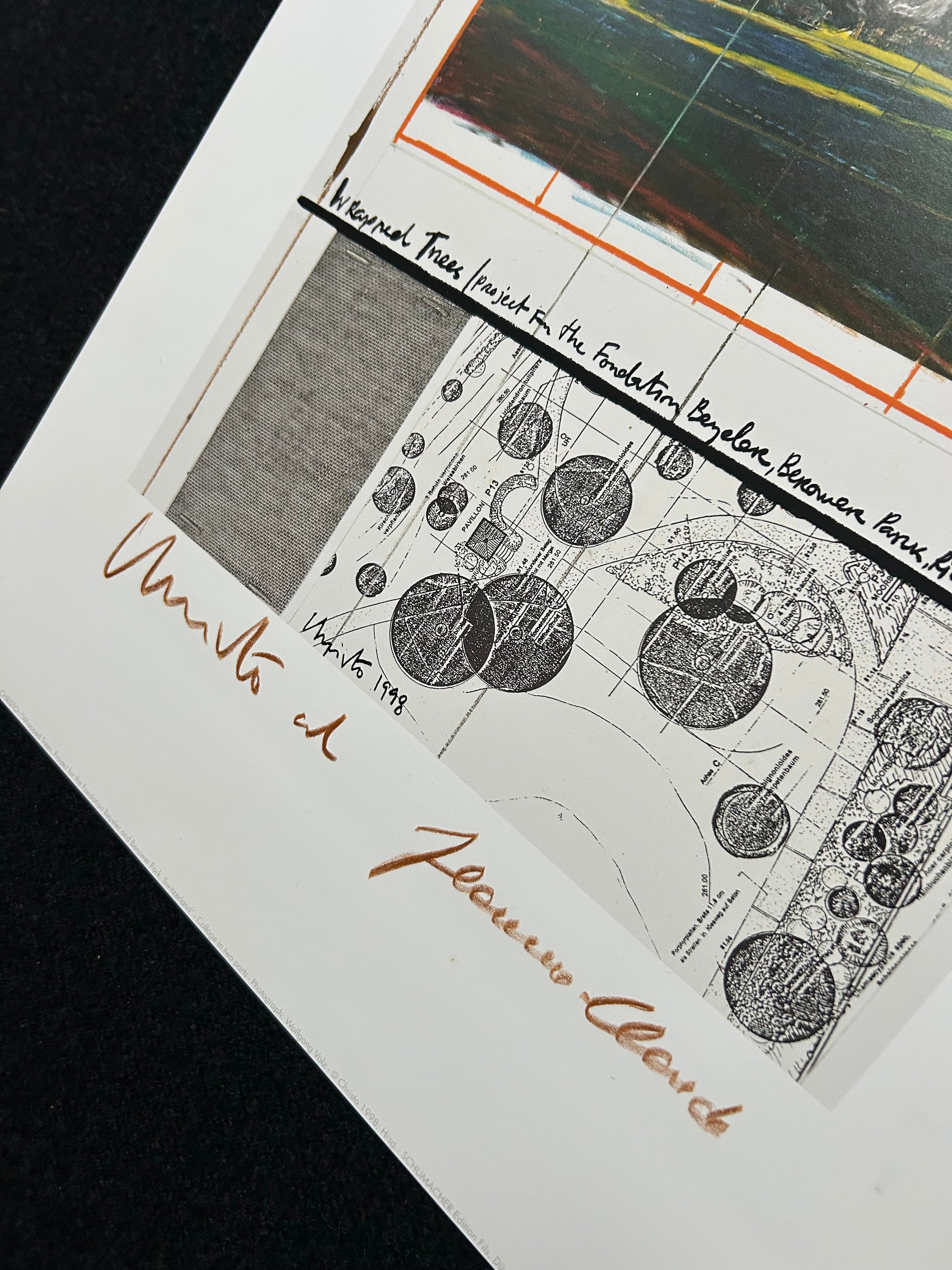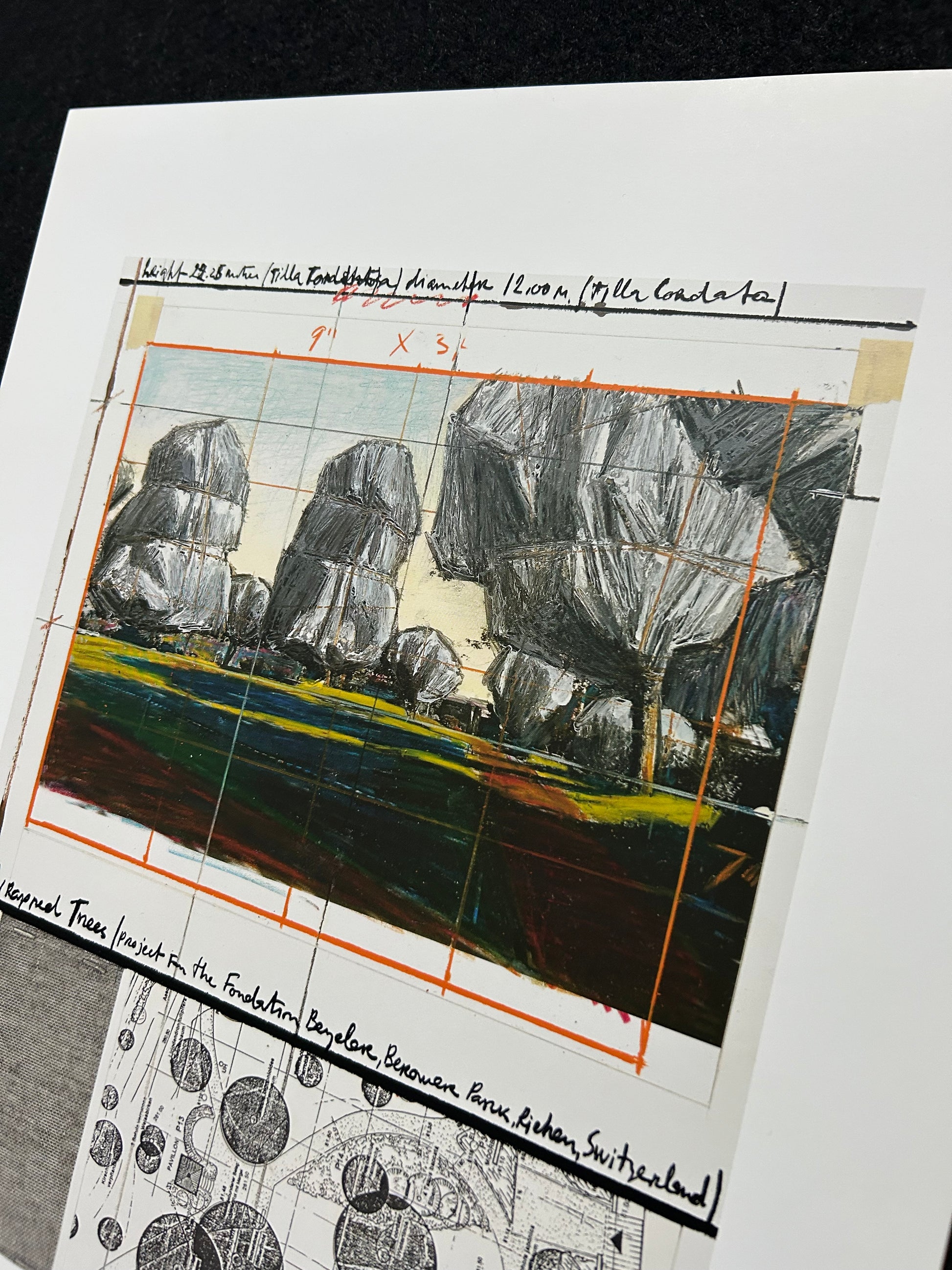 Christo (1935-2020) - „Wrapped Tress, Project for the Fondation Beyeler and Berower Park, Switzerland" - Collage in zwei Teilen (handsigniert)