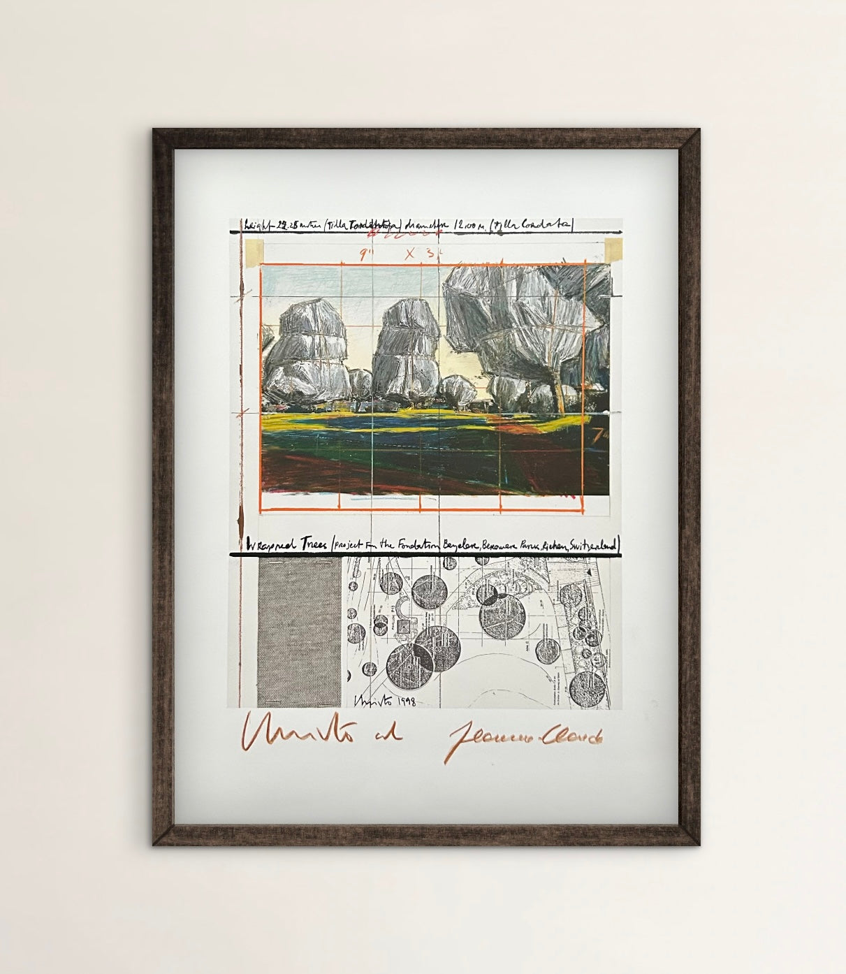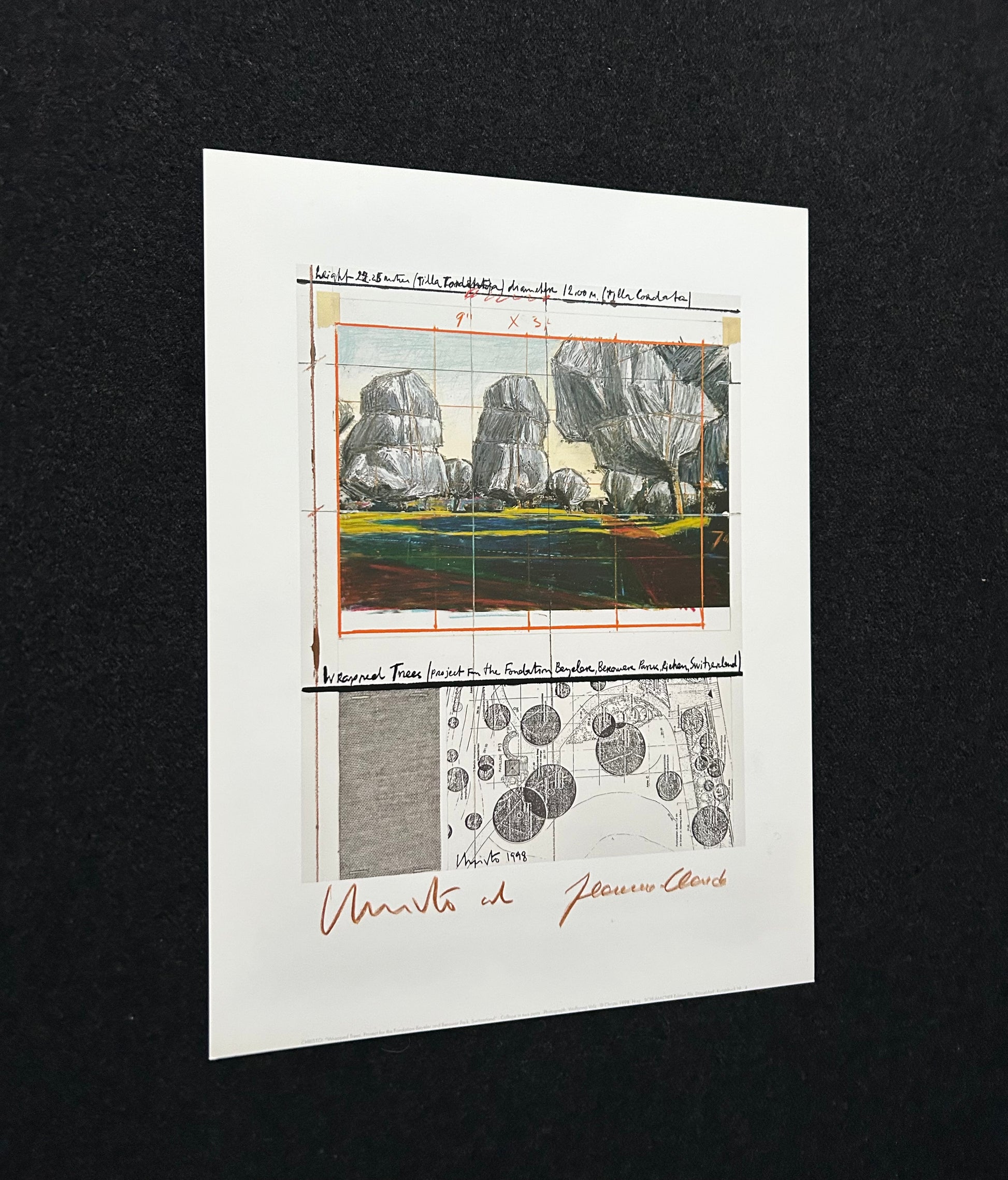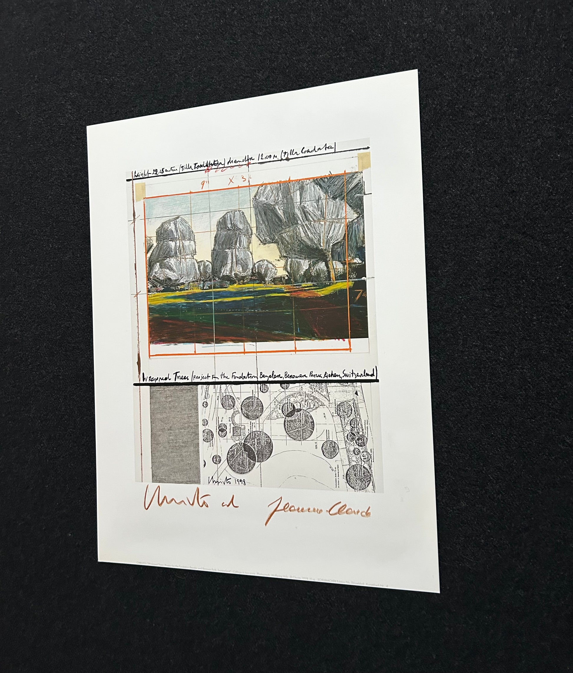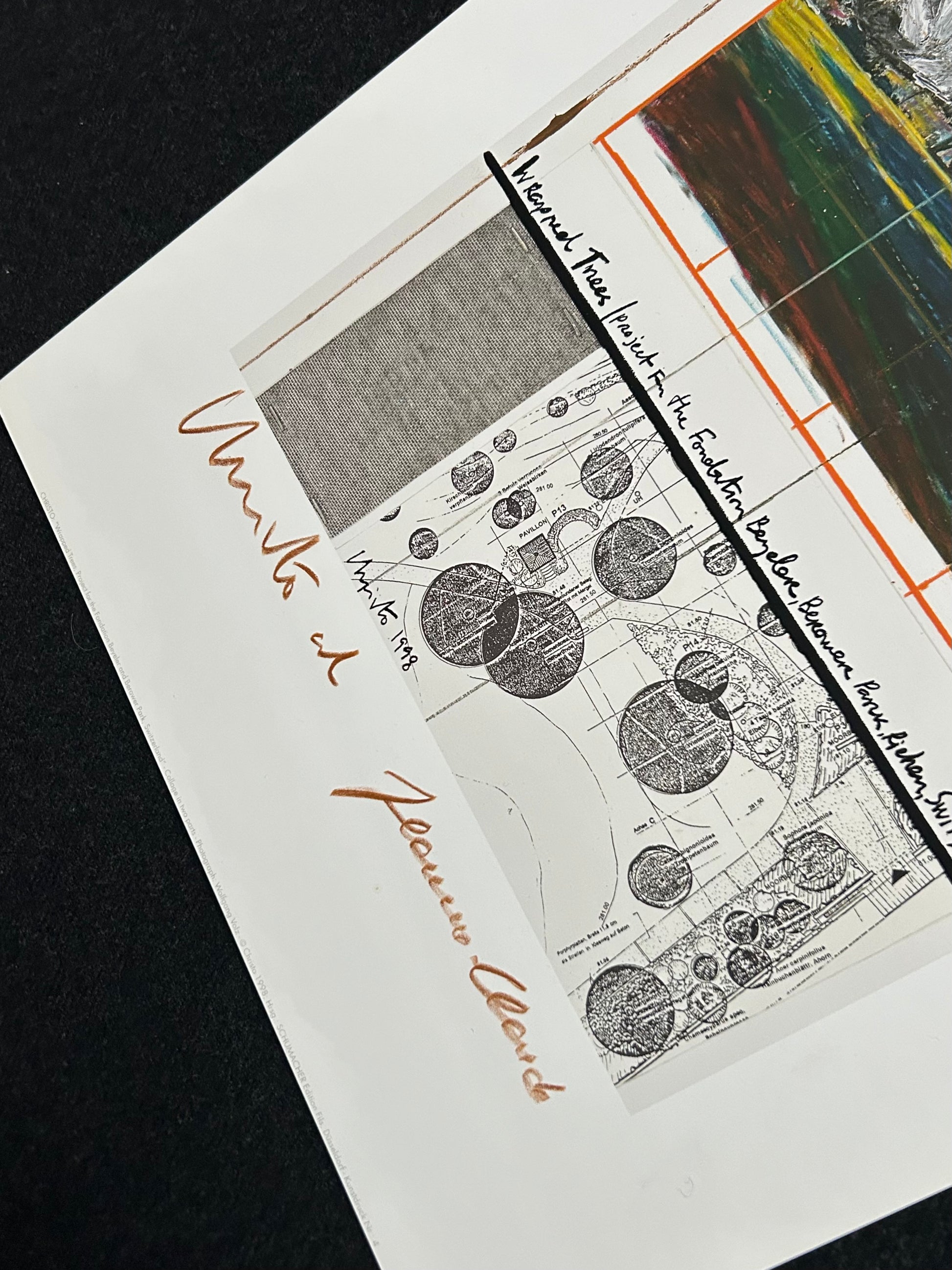 Christo (1935-2020) - „Wrapped Tress, Project for the Fondation Beyeler and Berower Park, Switzerland" - Collage in zwei Teilen (handsigniert)