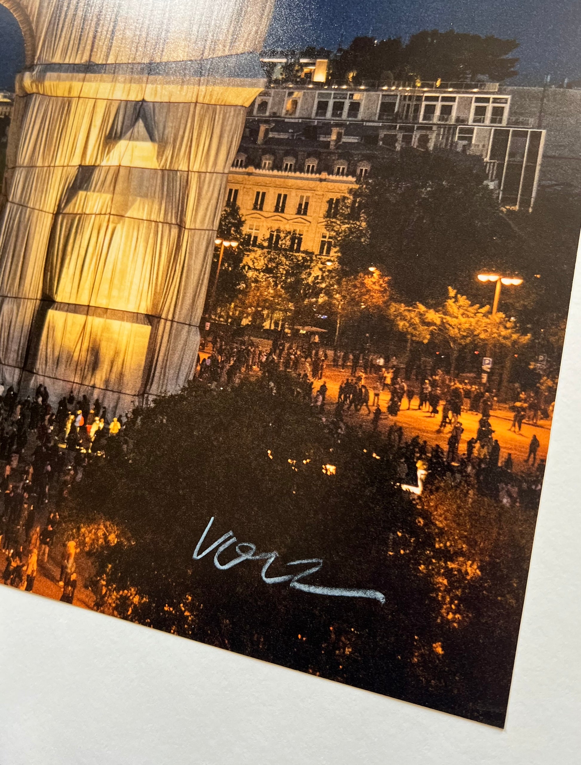 Christo and Jeanne-Claude „L‘Arc de Triomphe, Wrapped, by Night“, Art Edition No. 251-500, hier Exemplar: 300.
