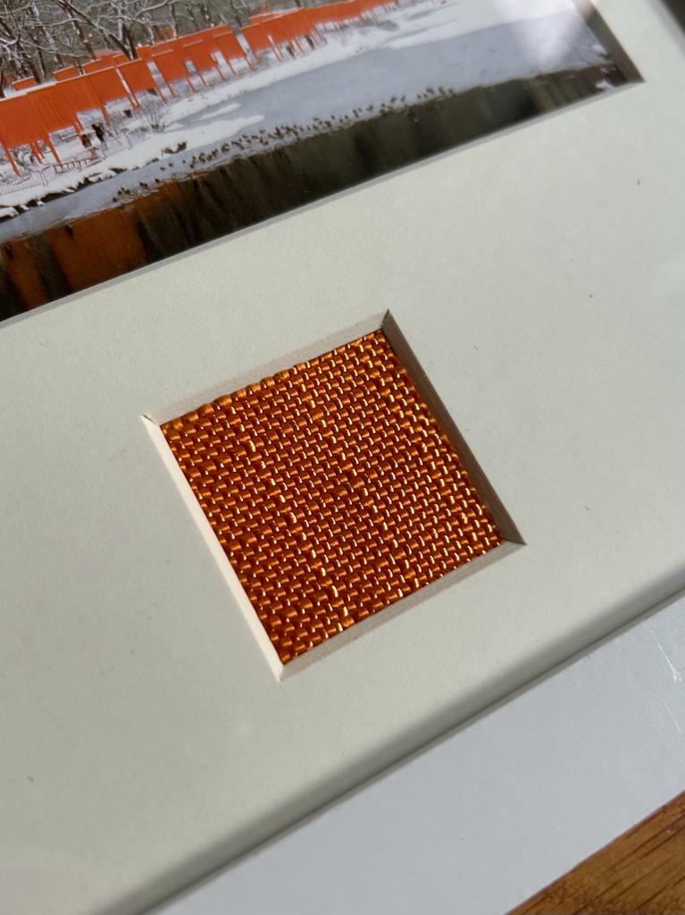 Christo - „The Gates“ Offsetdruck mit original Stofffetzen
