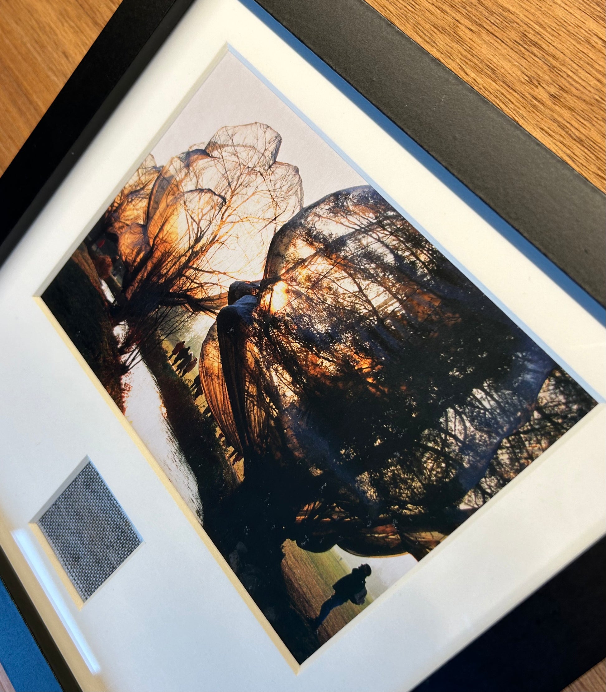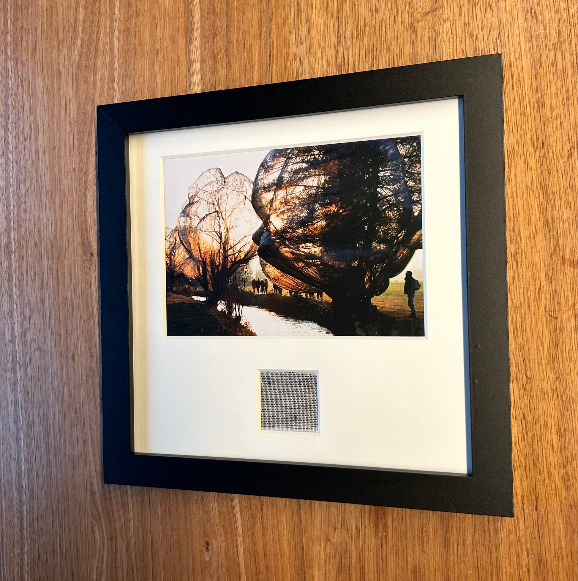 Christo - „The Wrapped Trees“ Offsetdruck mit original Stofffetzen