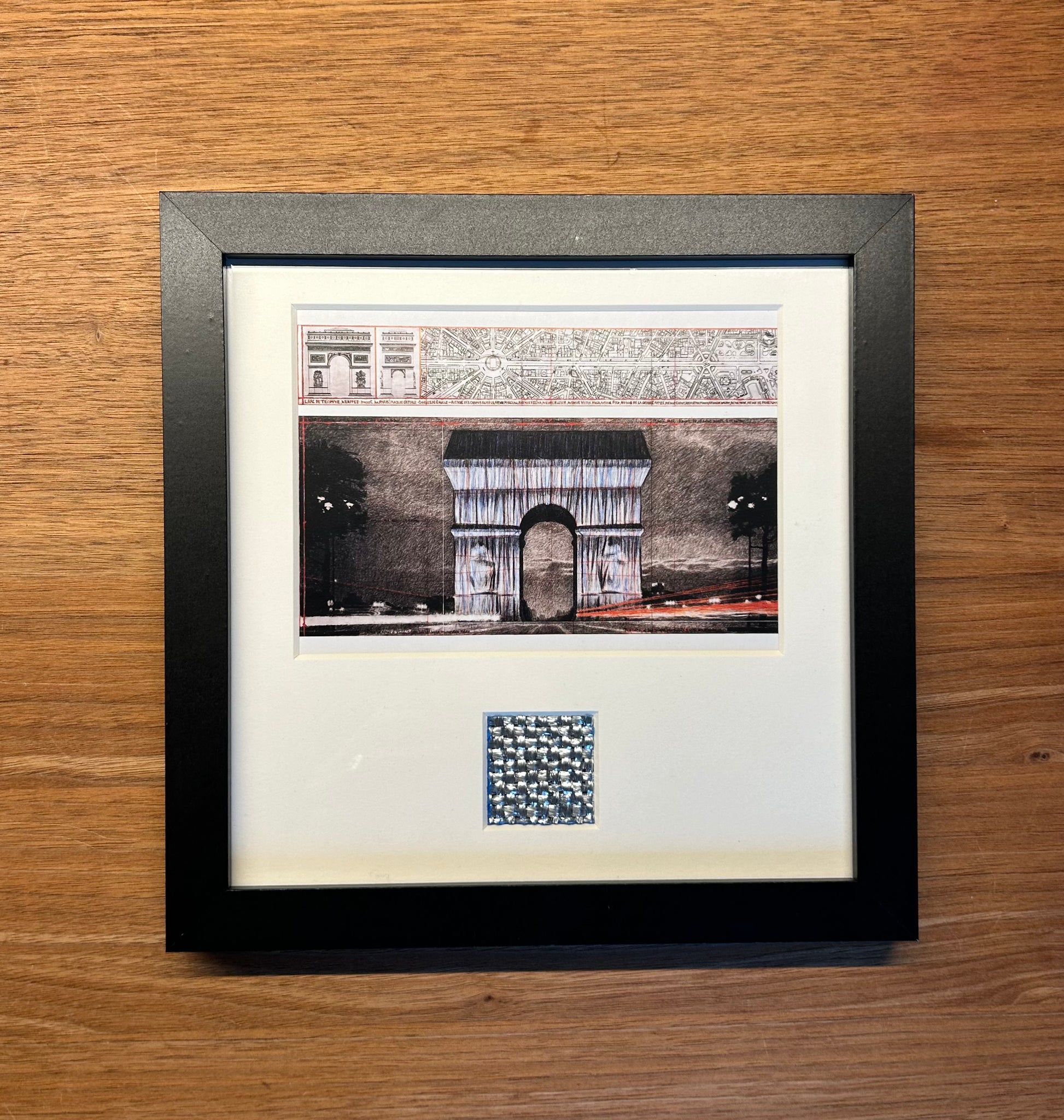 Christo - „Arc de Triomphe“ Offsetdruck mit original Stofffetzen