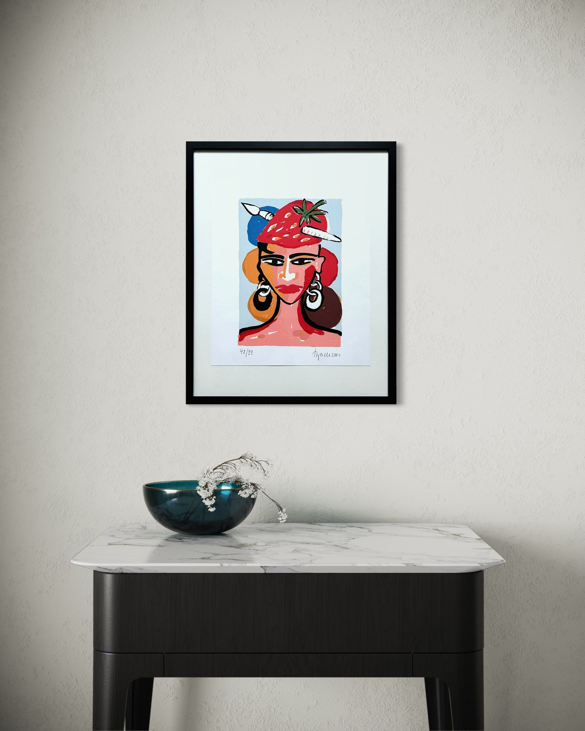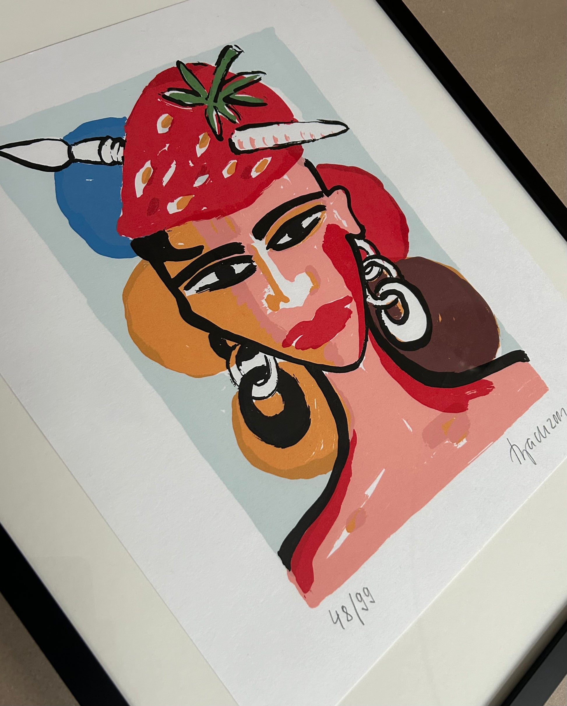 Der Druck befindet sich in einer hochwertigen Rahmung und Teil des Angebots.