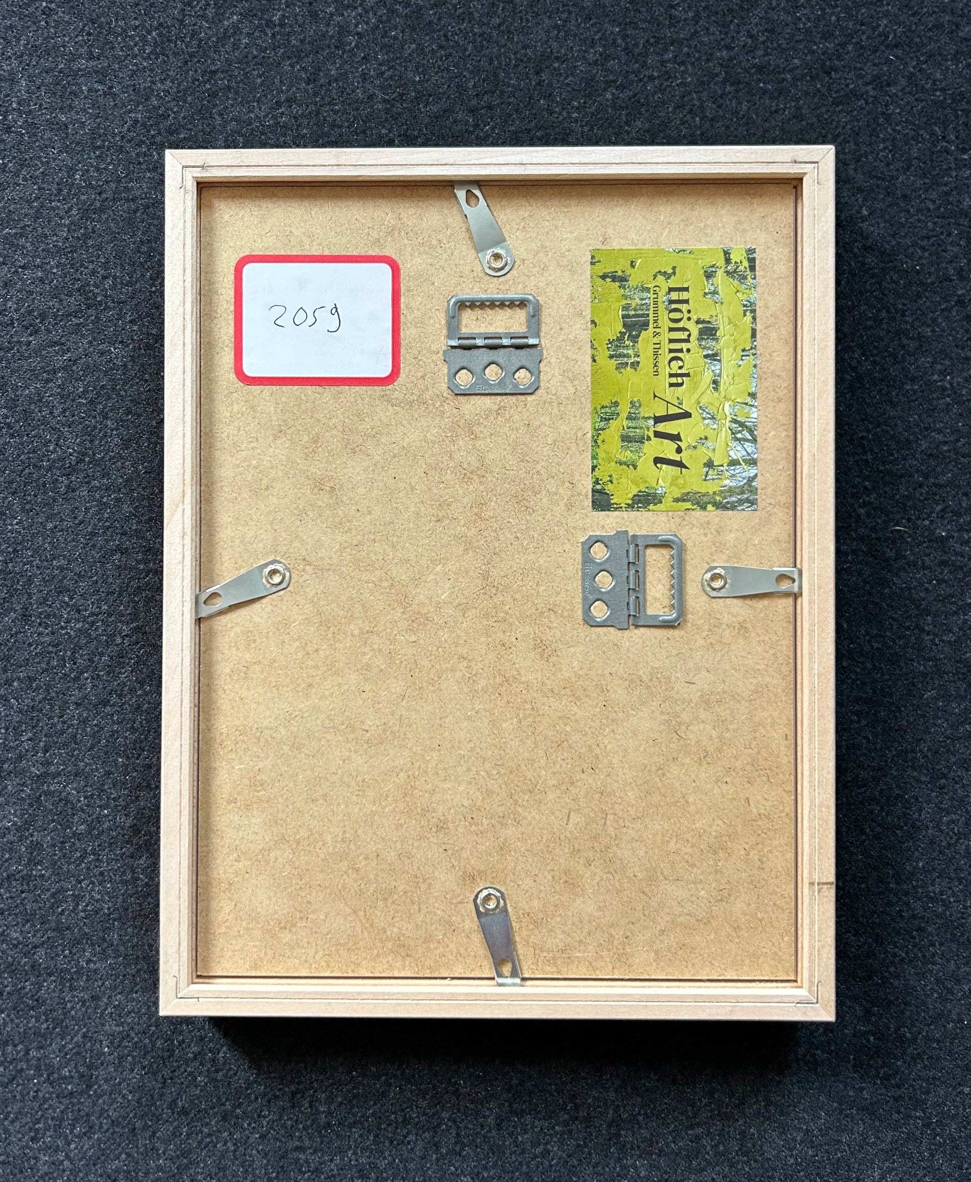 Die Arbeit wird inklusive Rahmen und Passepartout angeboten.