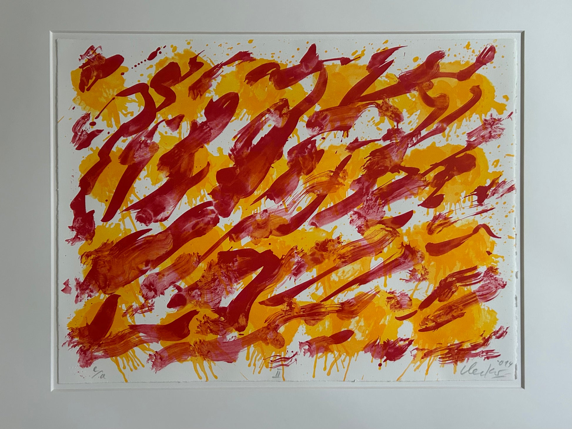 seltene Lithografie von Günther Uecker auf Büttenpapier in hochwertiger Galerierahmung mit Museumsglas (UV90), Entstehungsjahr: 2014, handsigniert, datiert & nummeriert, Prägestempel Stoob, St. Gallen (Hrsg.), Blattgröße: 45,0 x 60,0 cm, Rahmengröße: 70,3 x 85,0 x 3,0 cm